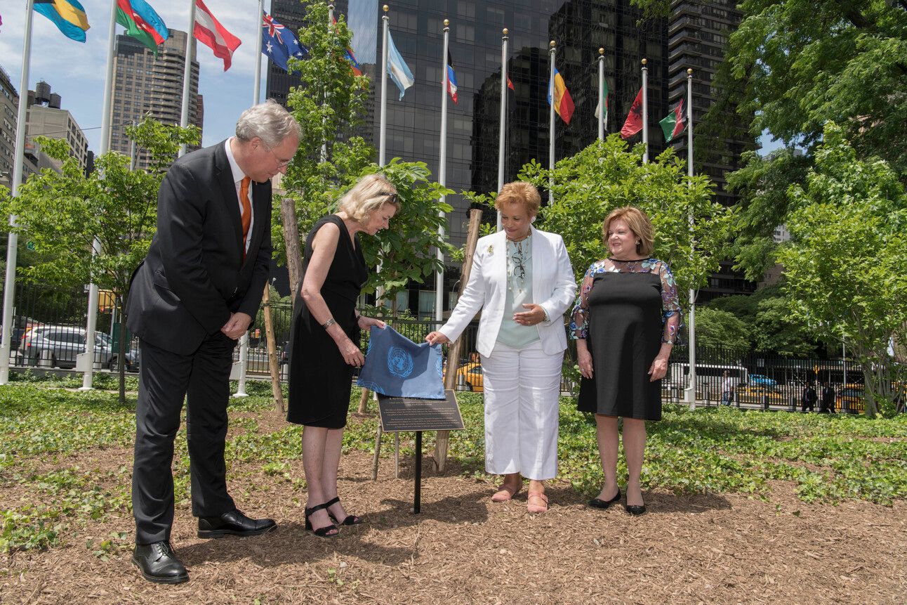 Plantation d'un arbre au siège de l’Organisation des Nations Unies à New York pour commémorer l'héritage d'Anne Frank. Photo ONU/Mark Garten